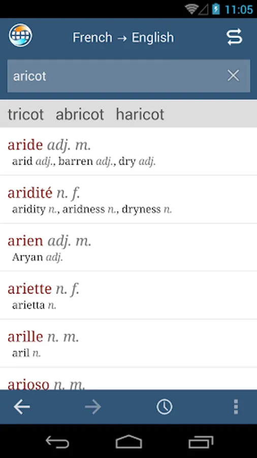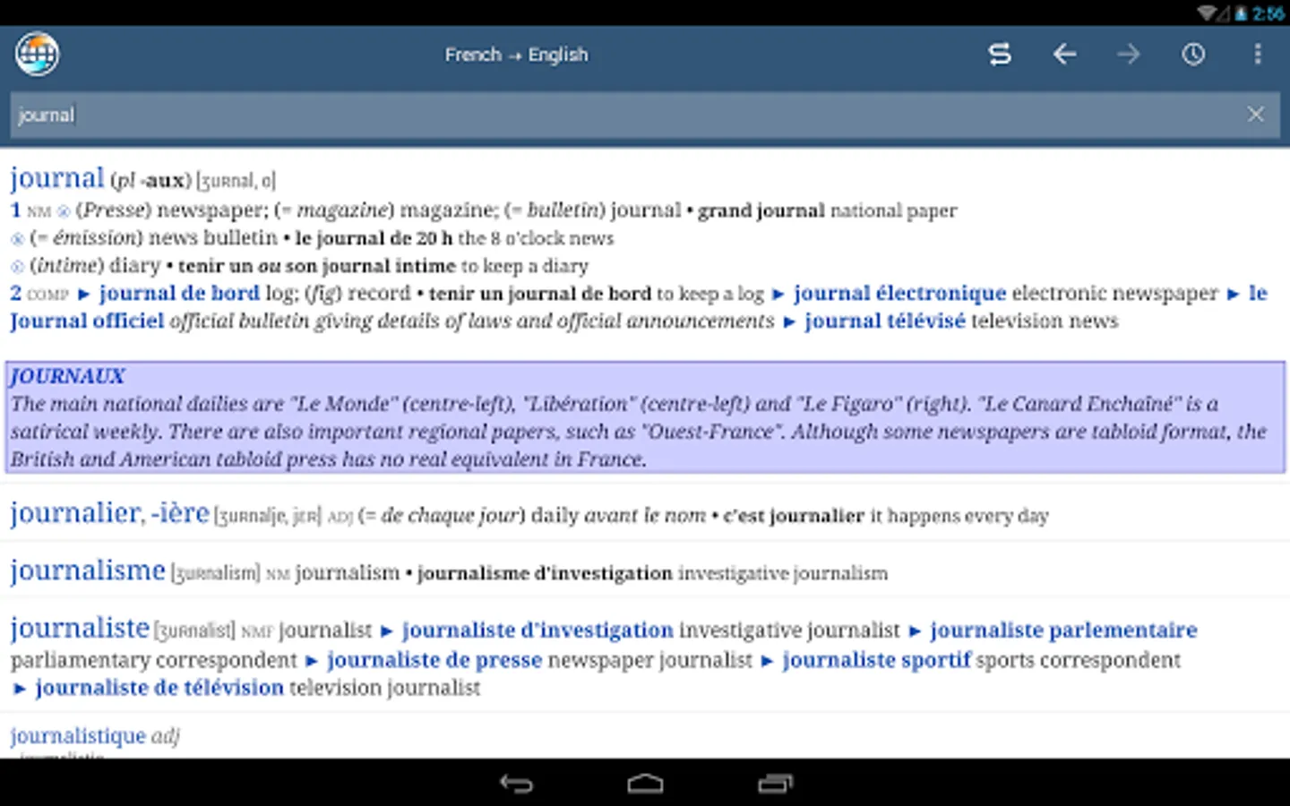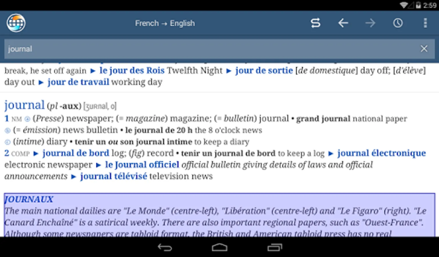 Download Ultralingua, the amazing bestseller that gives you instant offline access to 35+ dictionaries from leading sources like Collins, Le Robert, and Vox (via in-app purchase). Instant smart search, automatic verb conjugation, and number translation make it easier to express yourself anywhere you go.