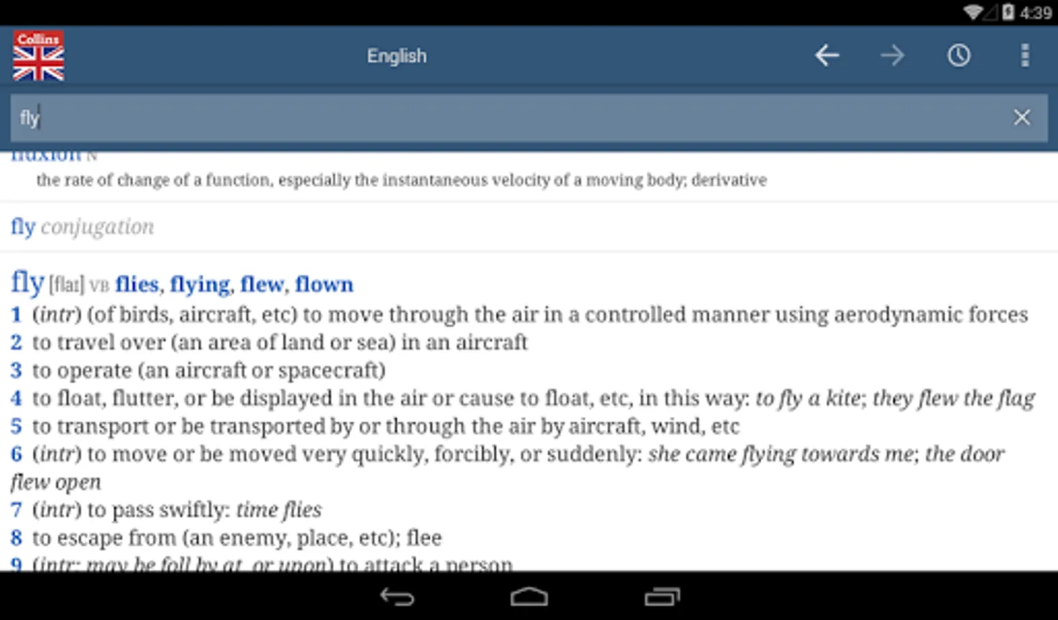 • Smart search finds your word even when you enter a plural, a conjugated verb, or a misspelling