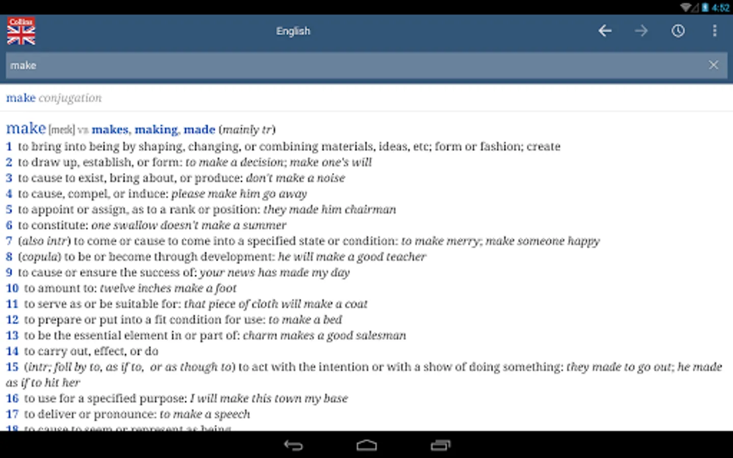 Download this bestselling collaboration between Ultralingua and HarperCollins. Get instant offline access to world-class dictionary data, with smart search, automatic verb conjugation, and number translation to help you find just the word you need.