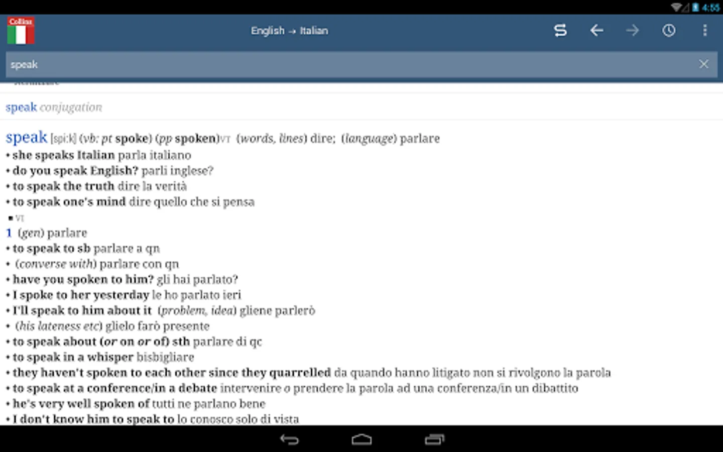 Download this bestselling collaboration between Ultralingua and HarperCollins. Get instant offline access to world-class dictionary data, with smart search, automatic verb conjugation, and number translation to help you find just the word you need.