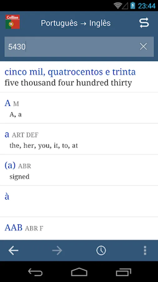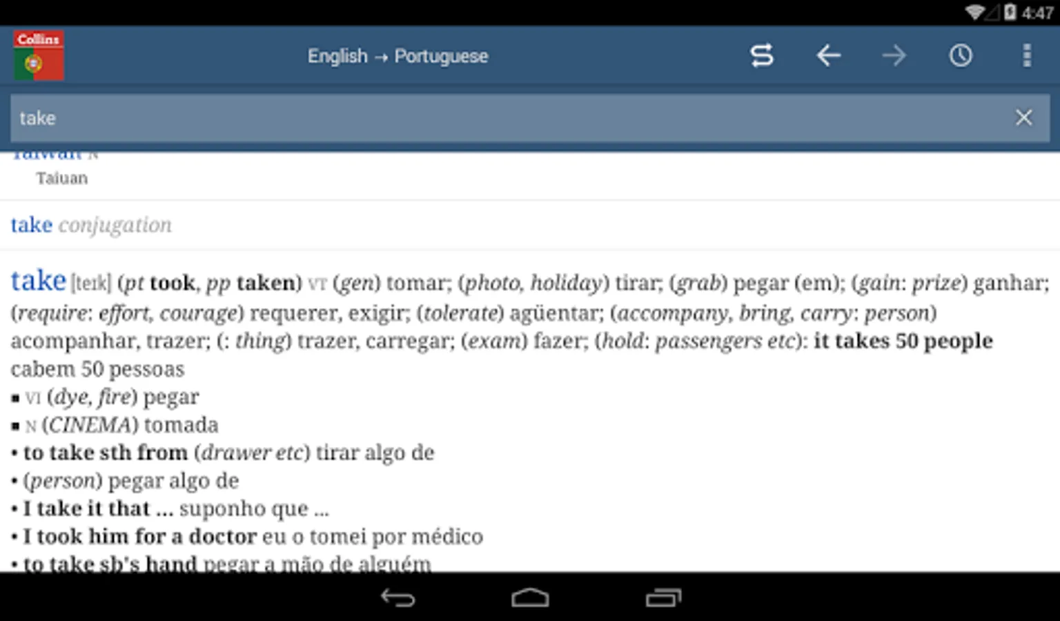 Download this bestselling collaboration between Ultralingua and HarperCollins. Get instant offline access to world-class dictionary data, with smart search, automatic verb conjugation, and number translation to help you find just the word you need.