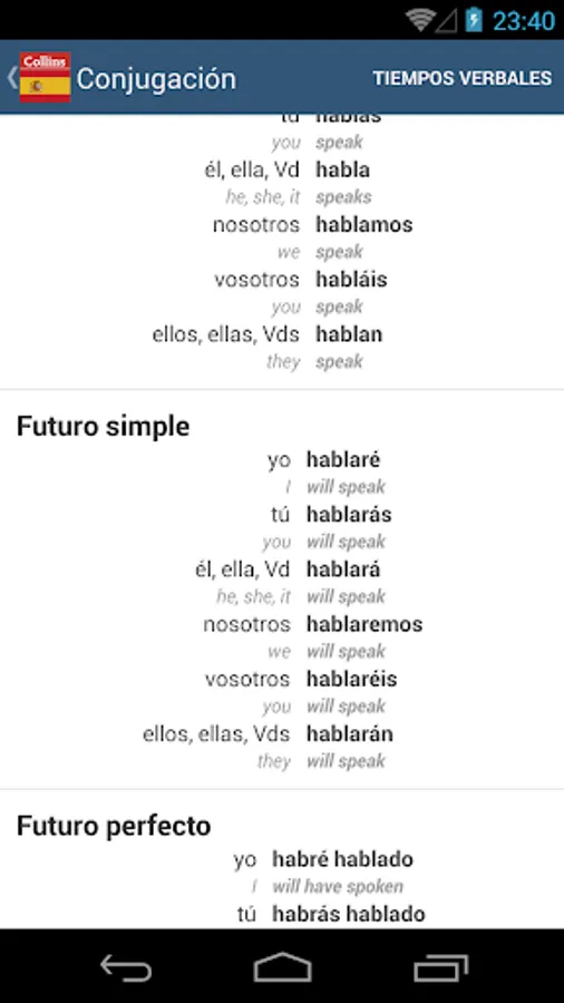• Complete conjugations for thousands of verbs