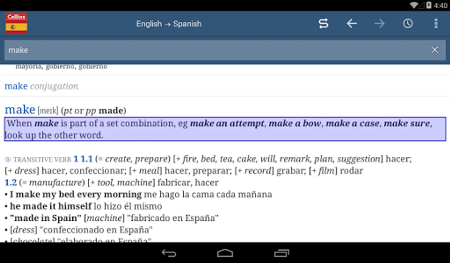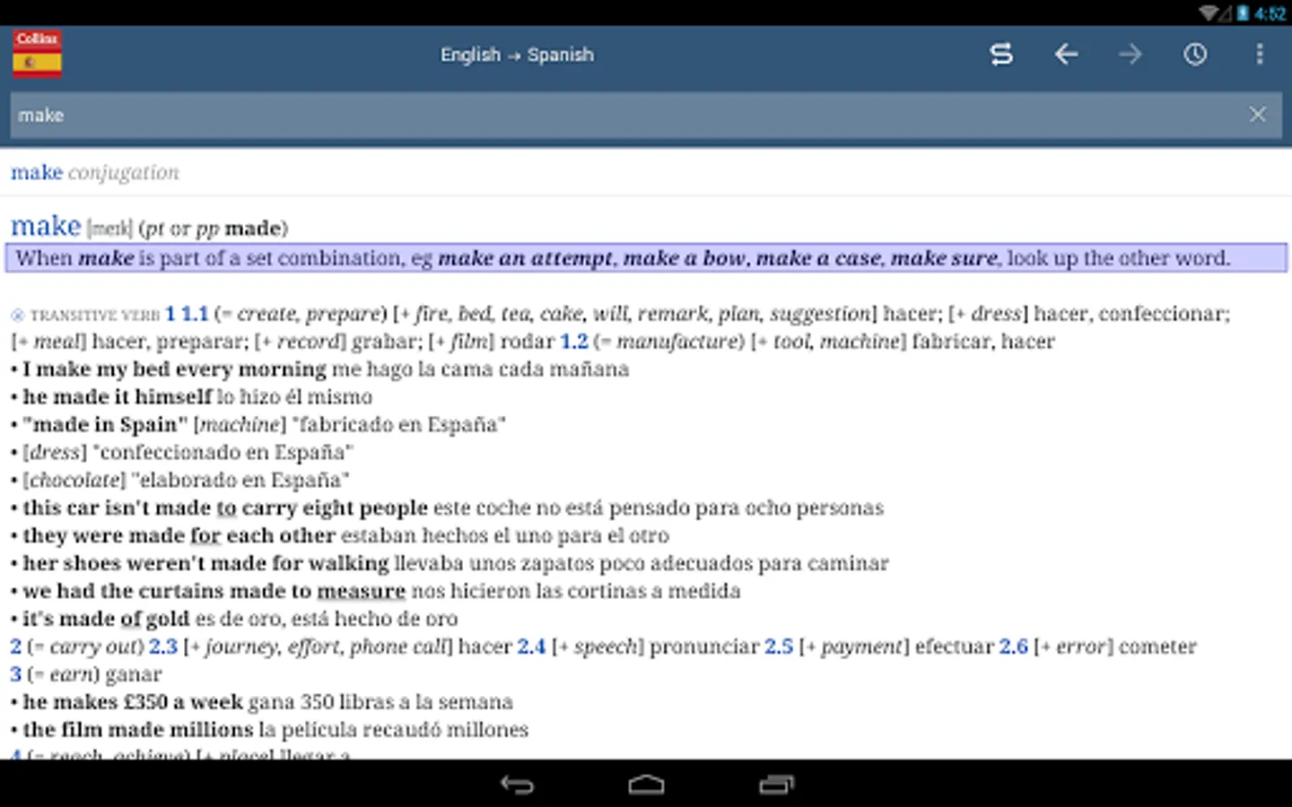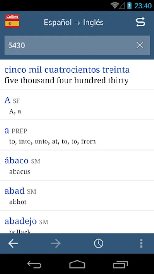 Download this bestselling collaboration between Ultralingua and HarperCollins. Get instant offline access to world-class dictionary data, with smart search, automatic verb conjugation, and number translation to help you find just the word you need.