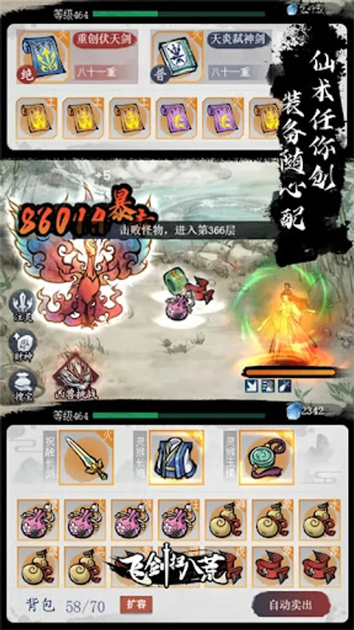 Come and play the ultra-casual Shanhaijing idle game - "Flying Sword Sweeping the Eight Wastes"!