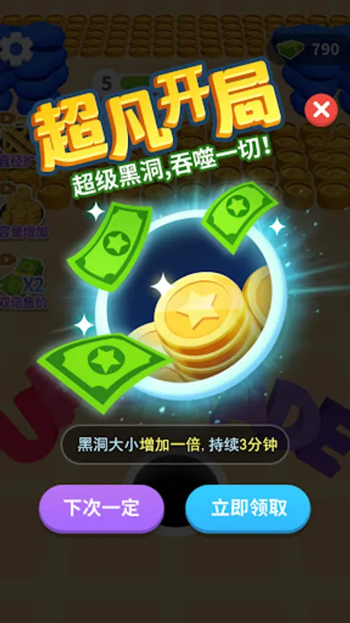 "Swallow Evolution" is a casual puzzle game with simple and easy-to-understand gameplay and convenient operation. Players manipulate the black hole by swiping the screen to devour everything. The amount of devoured items determines the income obtained by the level. After obtaining the income, the movement speed and capacity of the black hole can be upgraded to improve the game efficiency.