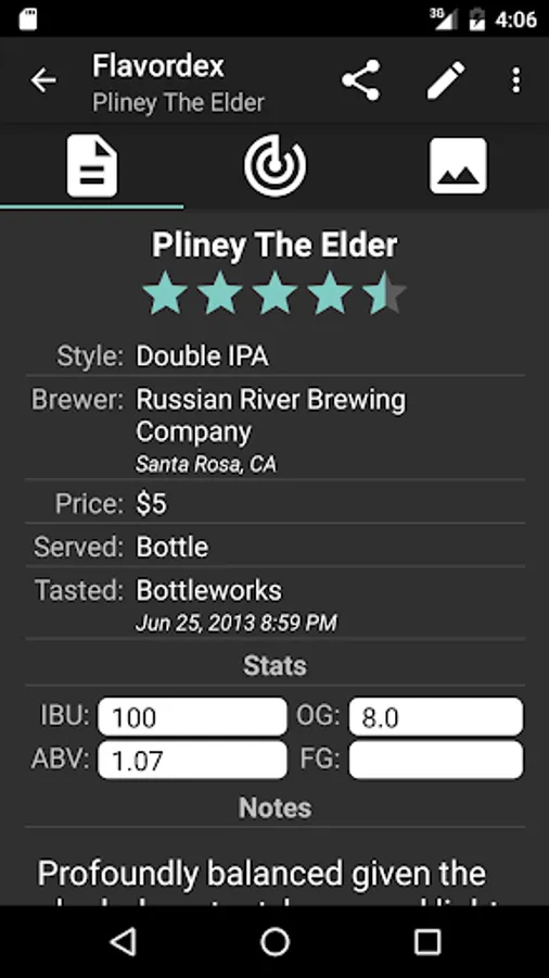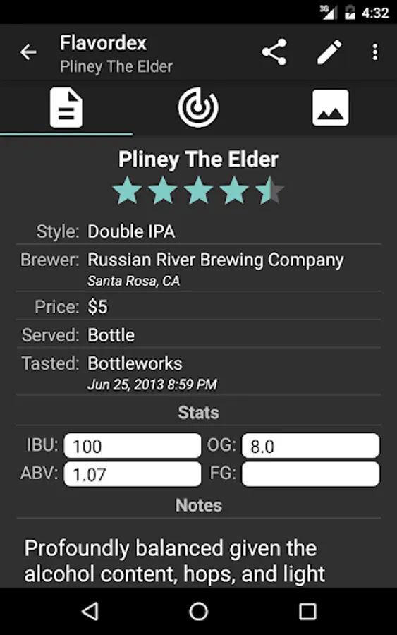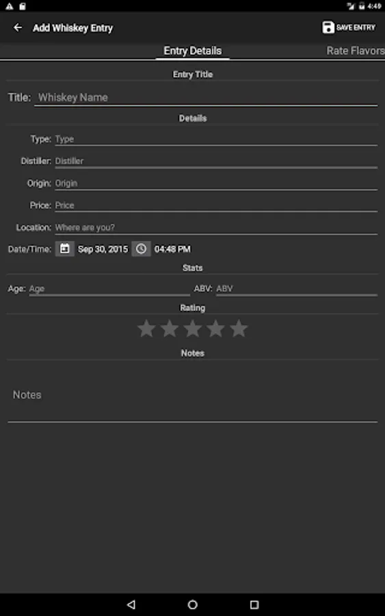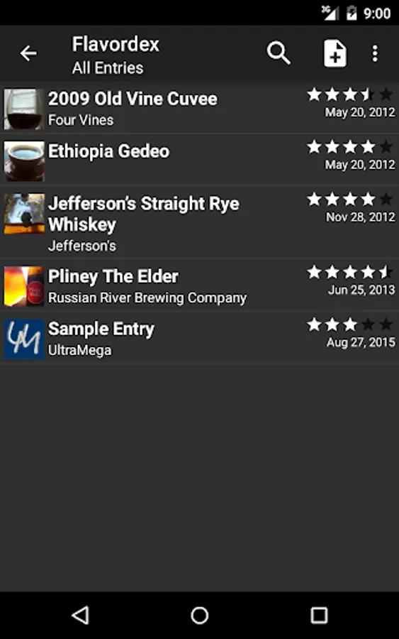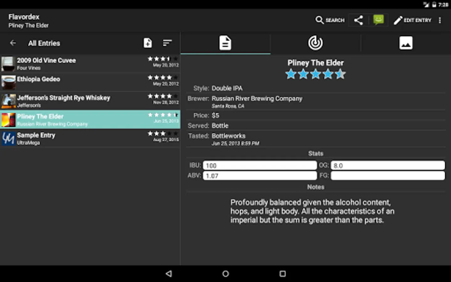- Record details about each product including the maker, price, tasting location, date, notes, and more