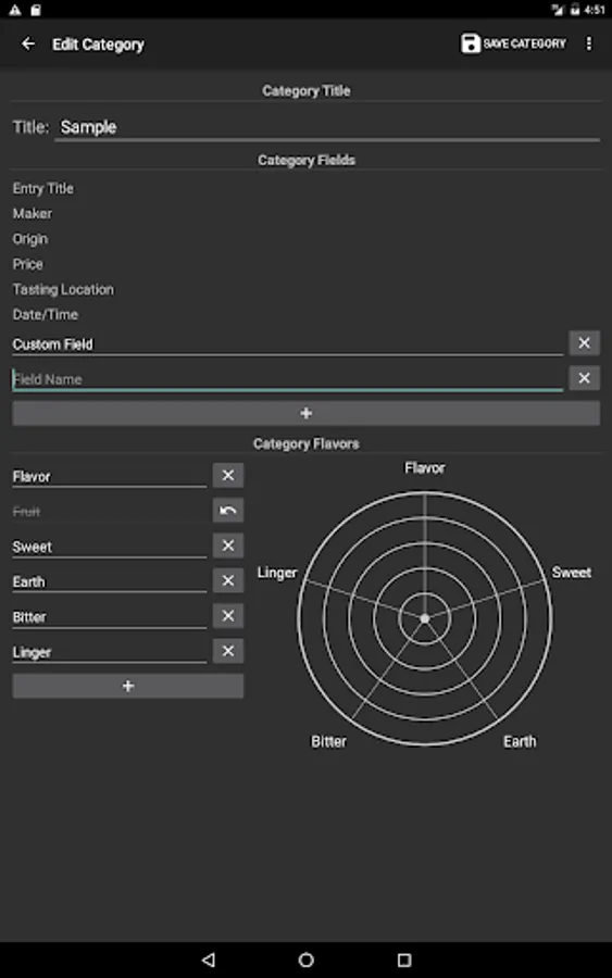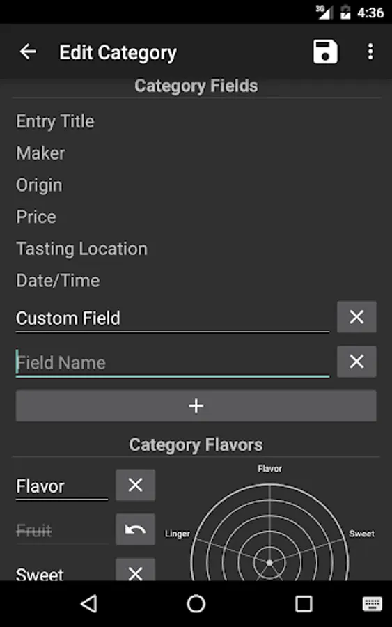 Flavordex has categories preloaded for beer, wine, whiskey, and coffee. If none of those fit your needs you can add your own categories.