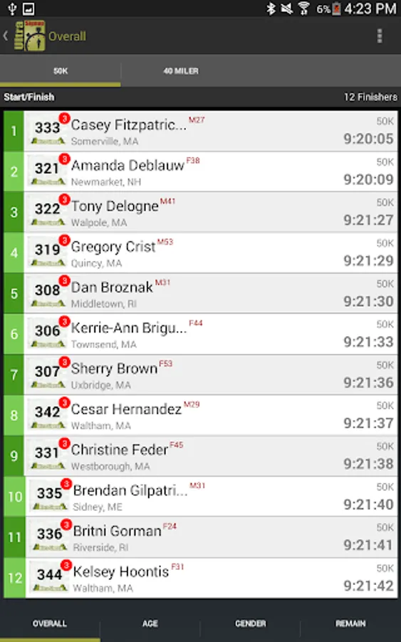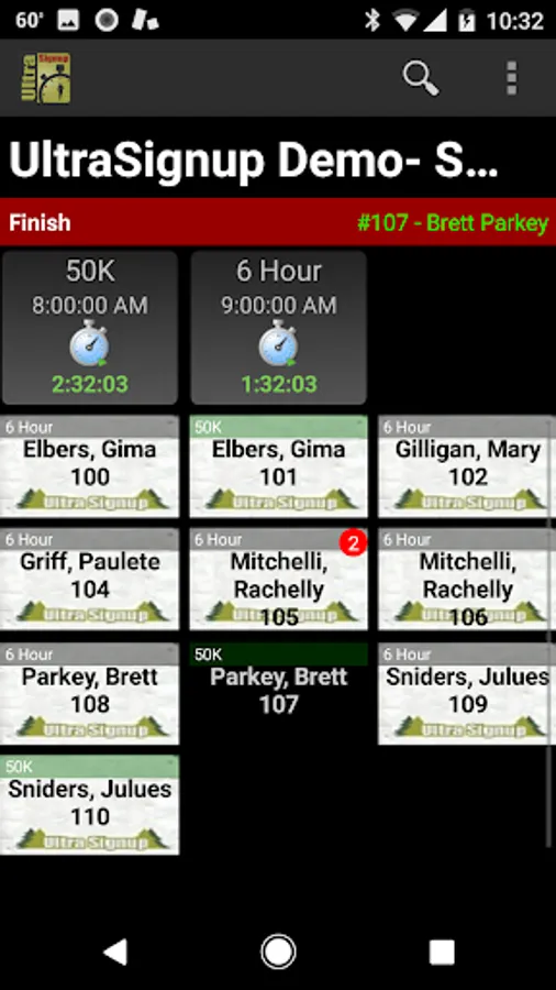 Simply key in a special code that is available when you are logged into Ultrasignup and the app will seamlessly pull in all your participant information and setup your event for timing. In addition to simply recording finishers, you can record at multiple locations, record laps for loop courses, and broadcast your results live for participant tracking.