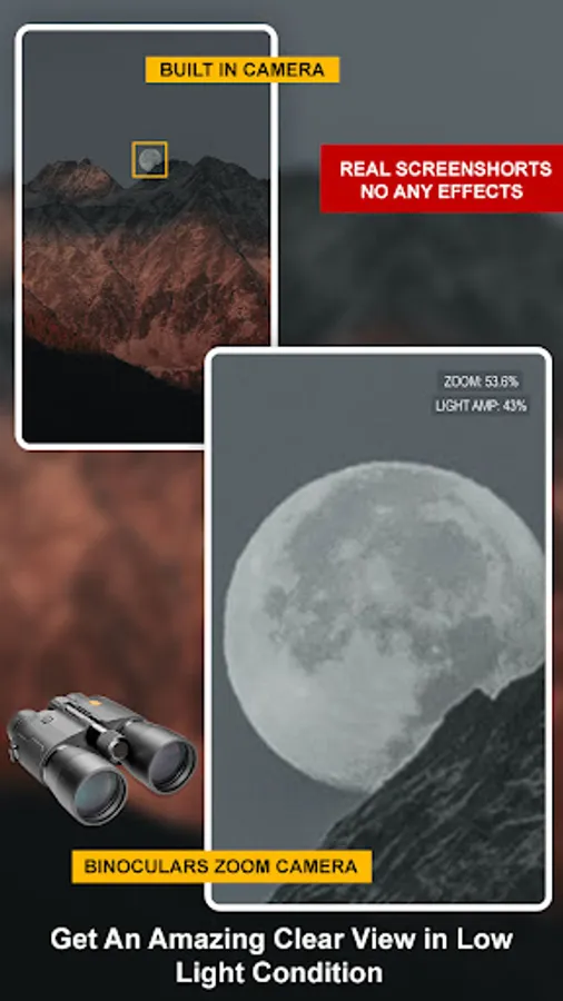 Ultra Zoom Camera Binoculars App functions just uses the radius of the full potential of the built in camera of your device. App is designed for android cellphone with HD camera, it is an Ultra camera app with support for manual controls such as exposure picture and video recording.