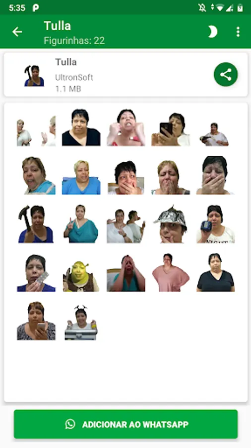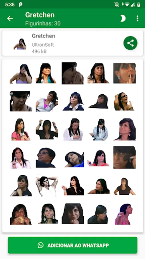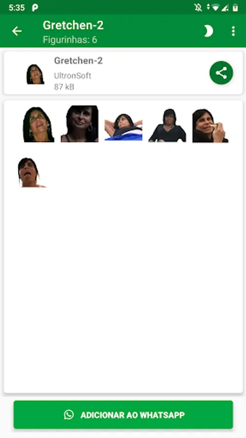 O aplicativo pode incluir várias embalagens de adesivos que você pode importar e usar no app.