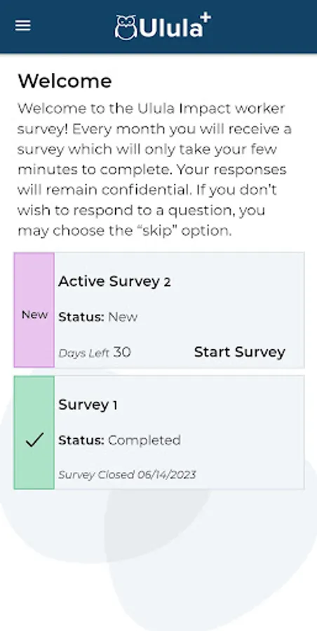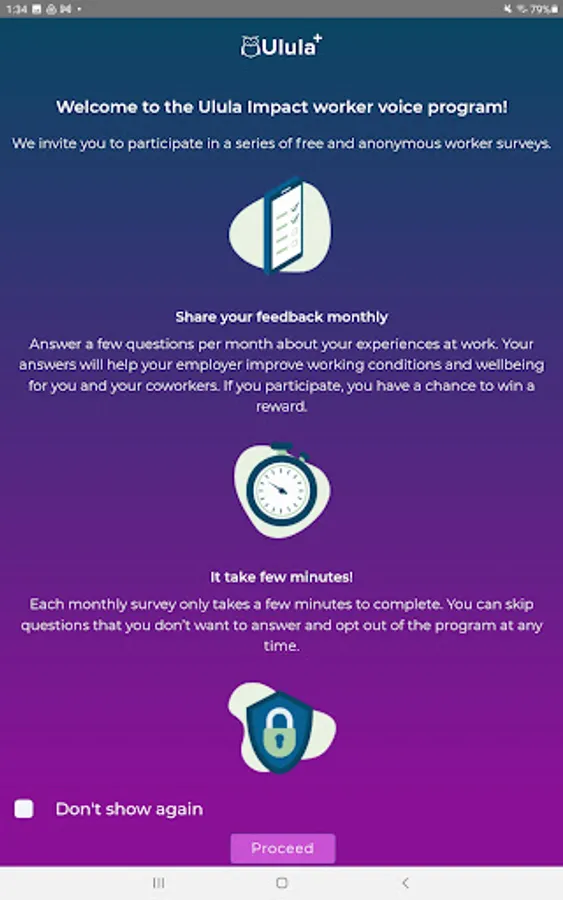 The Ulula+ app is safe and secure. All survey responses remain anonymous to ensure that workers don’t face retaliation for sharing their feedback. Ulula takes privacy seriously and will never store or share personal information. Visit https://ulula.com/privacy-policy/ for more information.