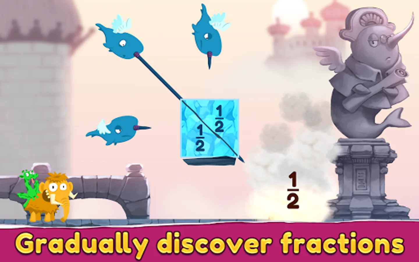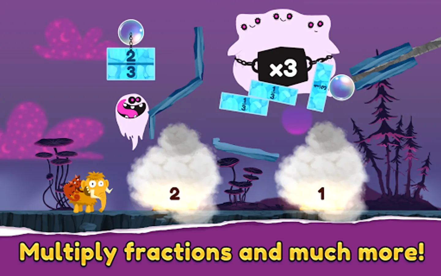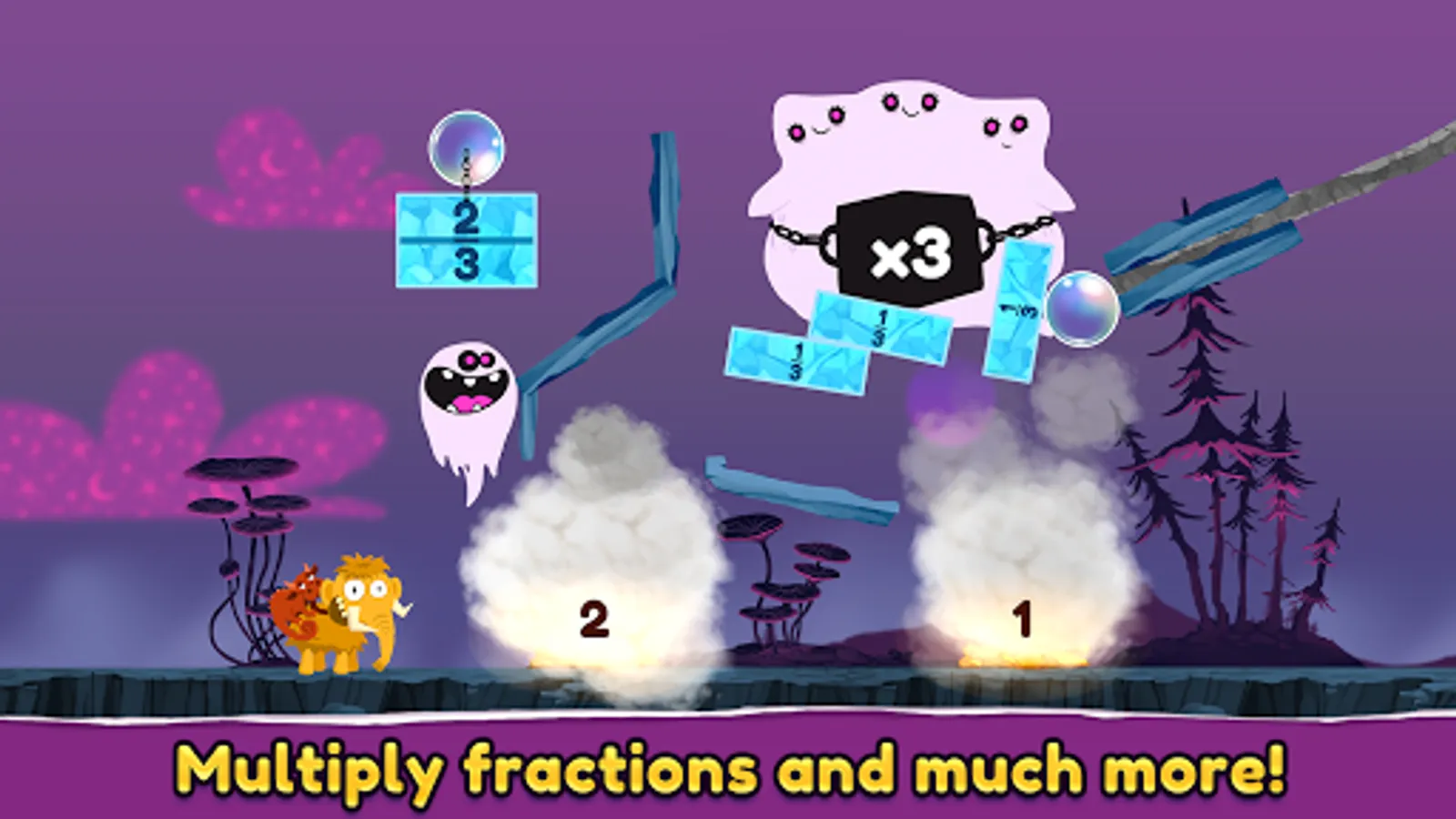 Help Mammoth get his stolen hat back with the support of new creatures that move, multiply and reveal hidden fractions. Embark on a surprising journey in this puzzle game designed for children 6-12-year-old.
