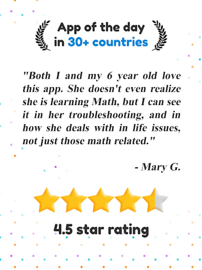 Math Makers is an award-winning math learning app for ages 4-10. It is loved by millions of kids who play it to learn math without studying. Created by educational experts, Math Makers teaches kids place value, addition, subtraction, and other common core math concepts.