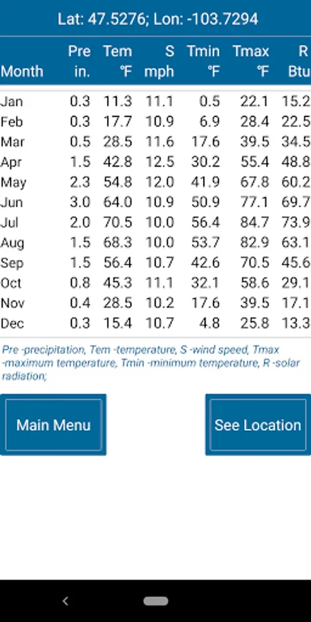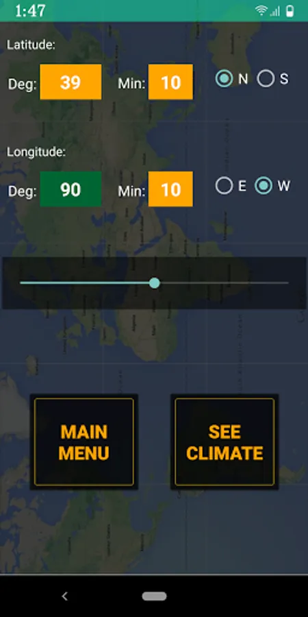 Climate characteristics on dry land of the earth, excluding Antarctica. To extract the climate, you have to declare a location using map, XY coordinates or site name.