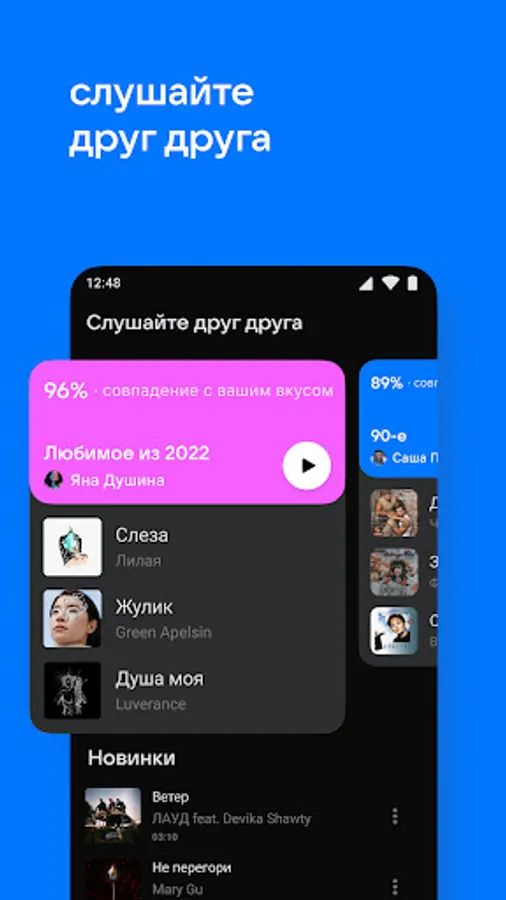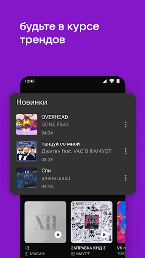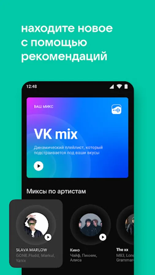 Music mixes are formed based on your preferences. Just select a track, artist, album or playlist, and let the VK Music player create a mix to your taste.