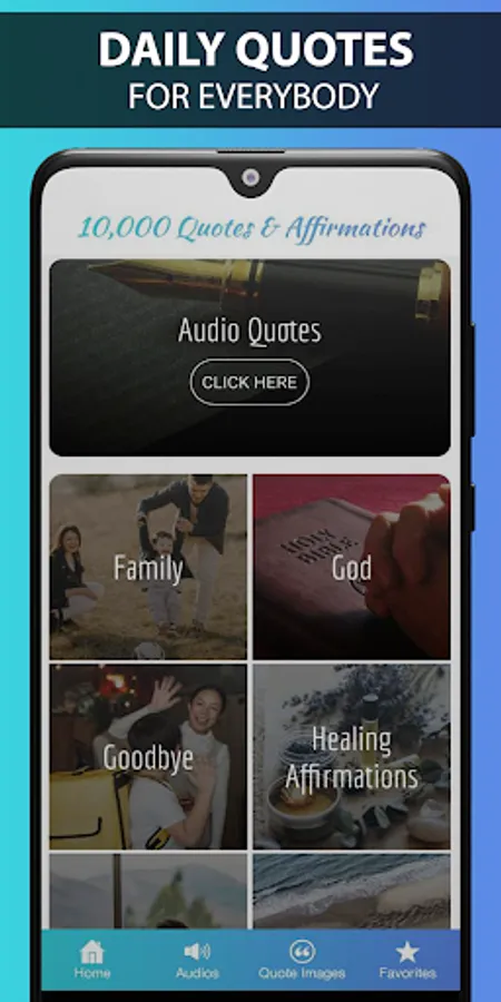 Access over 10,000 Quotes and Affirmations from famous people and authors, all neatly organized into various categories, absolutely free! Reading inspiring quotes and affirmations can help improve your life and motivation to achieve greater success. Whether you're searching for a collection of amazing quotes or need daily inspiration, this app has got you covered.