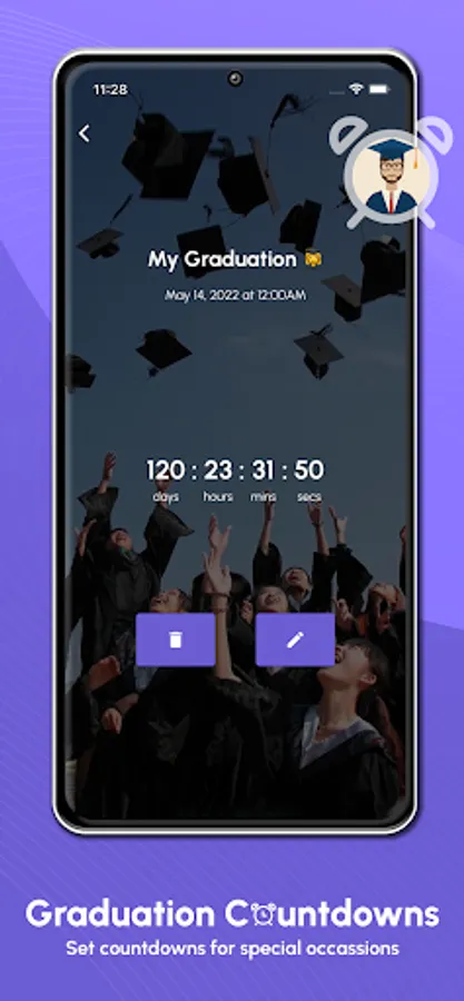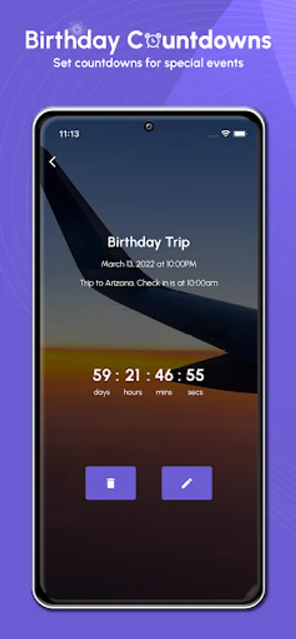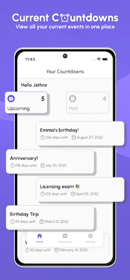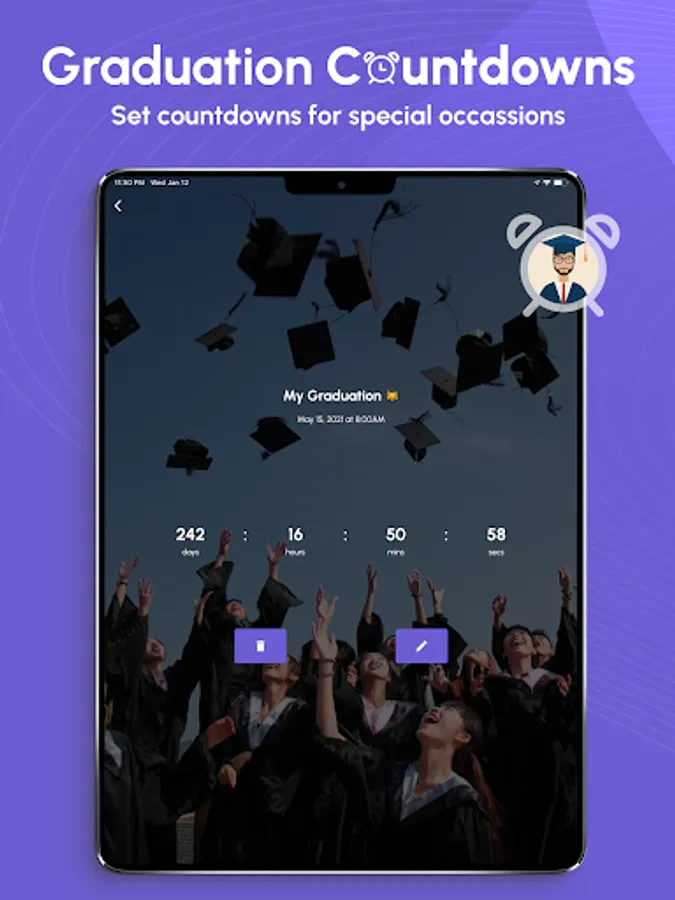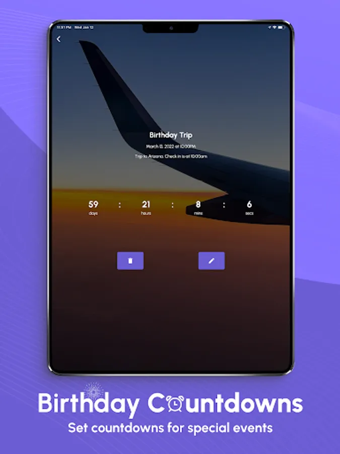 You can customize the countdown by adding background pictures and up to three notifications to the time of your event.