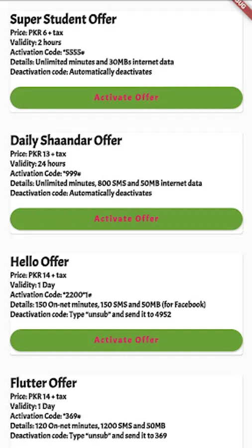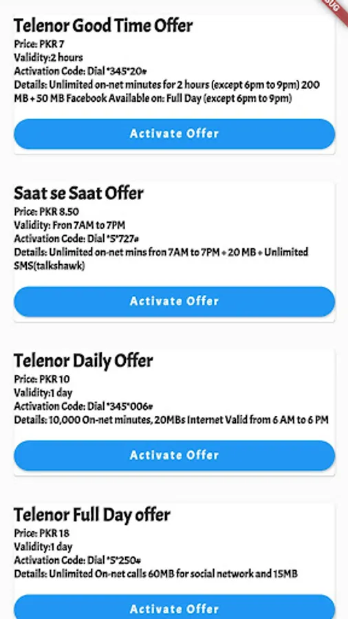 Sim offers guide 2021 app provide all Packages information’s containing Sms, Call, Internet 3G,4G . User can easily find the information about all types of Mobilink,Telenor,Zong and Ufone offers. It also provide remaining sms, minutes, internet , account balance. Someone can subscribe all packages by just clicking the desire package. All Sim Packages 2020 are free and Updated.