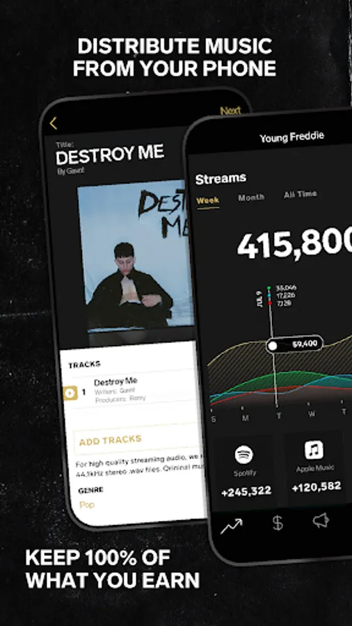 Distributing your music has never been easier. Download the UnitedMasters app to release songs on Spotify, Apple Music, YouTube, Amazon Music, TikTok and every other major music streaming service in minutes.