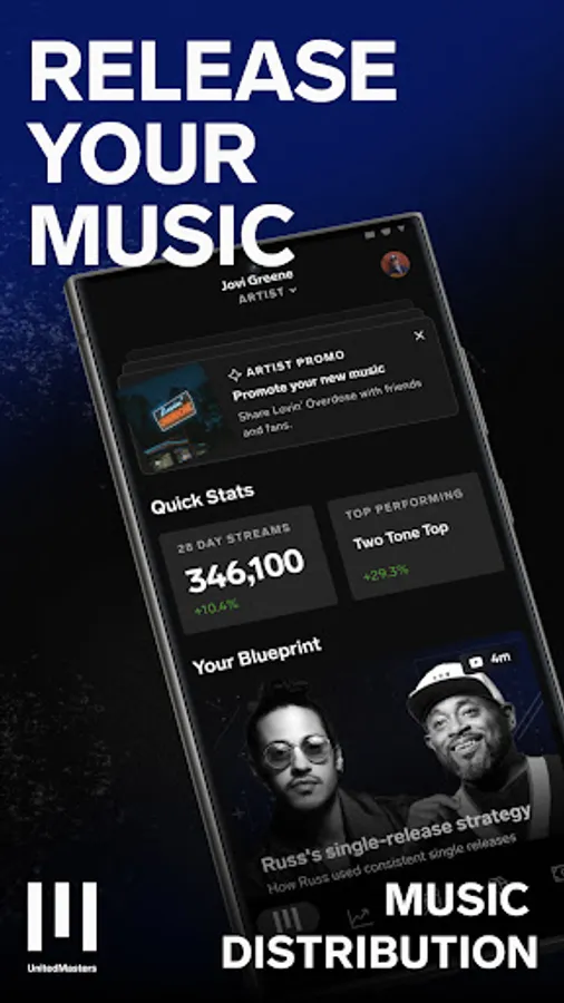 Sell your music online & distribute your songs across 50+ music streaming services such as Spotify, Apple Music, SoundCloud, & YouTube Music. Track your growth with our advanced analytics & access exclusive brand deals to elevate your music career.