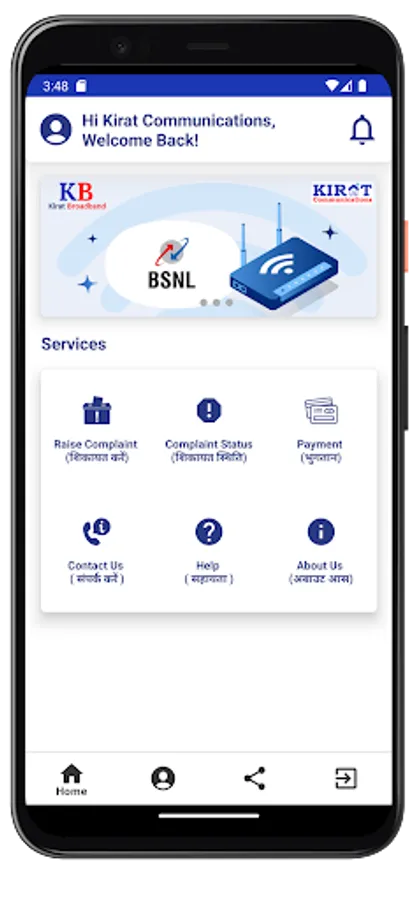 Kirat Communications (OPC) Private Limited is having a Franchisee Agreement with BSNL and providing Internet Connectivity to the Customers. Kirat Broadband is an App to maintain the account & service related activities for our Broadband Customers.