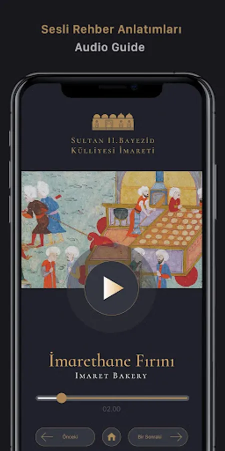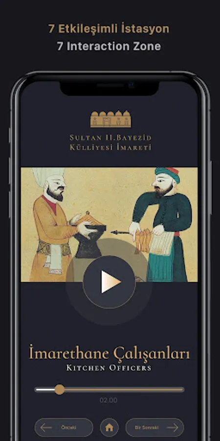 With this application, you can access audio narratives at the interaction points in the museum and have an interactive museum experience. You can listen to the information about the sections of the Imarethane, staff, visitors and banquets, which is one of the most important features of Ottoman cuisine, with audio narrations.