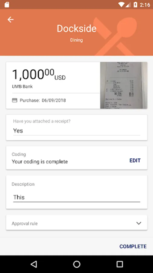 UMB’s powerful expense management capabilities let you streamline your expense reporting to capture receipts when you make purchases. Upload receipt images directly from your mobile device. Take advantage of the account listing to view all your accounts and transactions, and easily code transactions from anywhere.