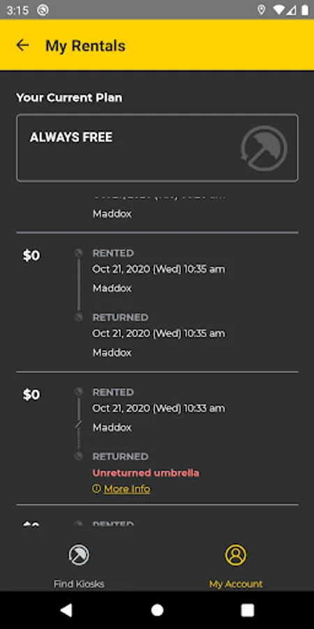 See your rentals history