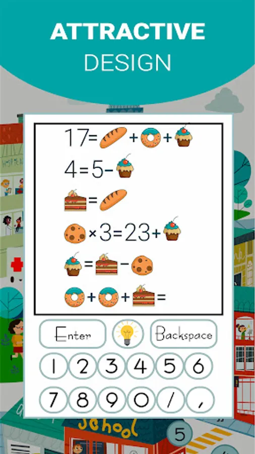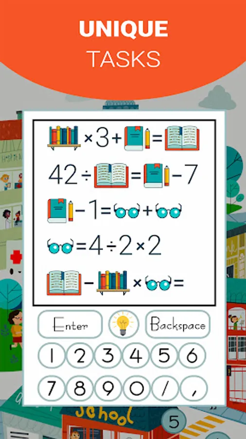 Such ticklers for adults have a lot of levels. With each level, the tasks will become more difficult. You will need to do not only addition and subtraction but also division etc. And the number of the different flashcards in one example will increase. The game will be excellent training for logical thinking.