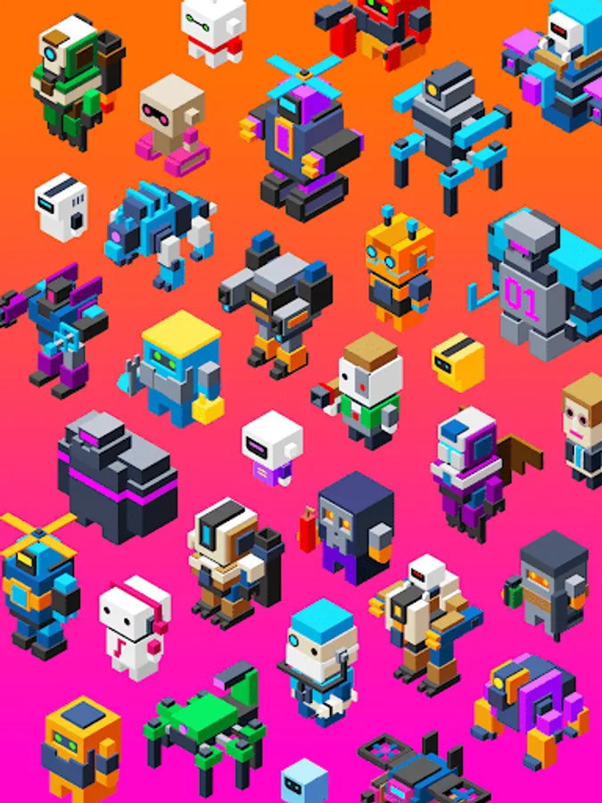 Drag identical robots together to discover 60 unique machines and upgrade your buildings in this highly addictive game! Earn coins and expand your mechanic world!