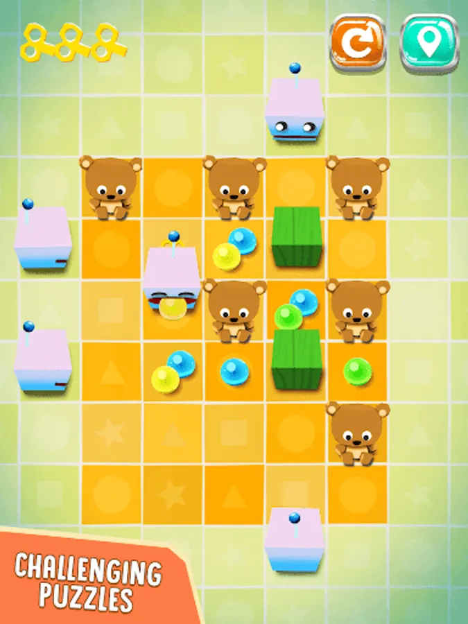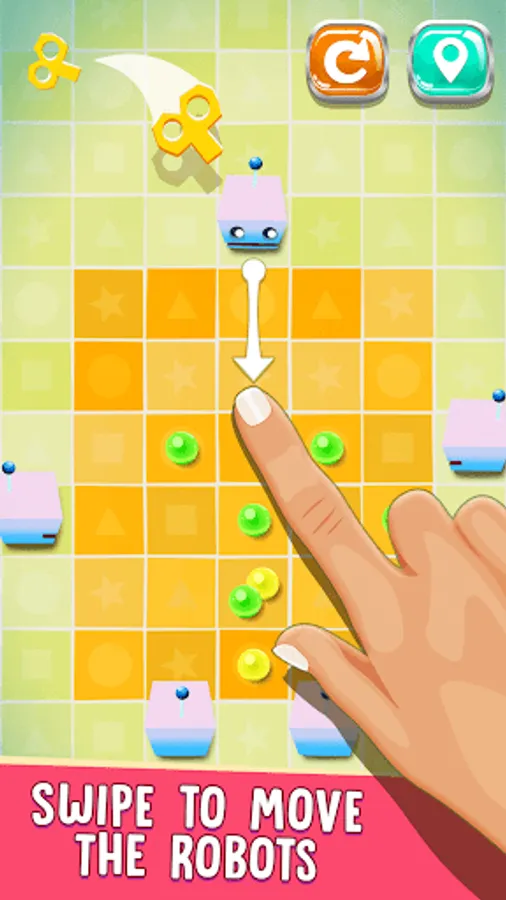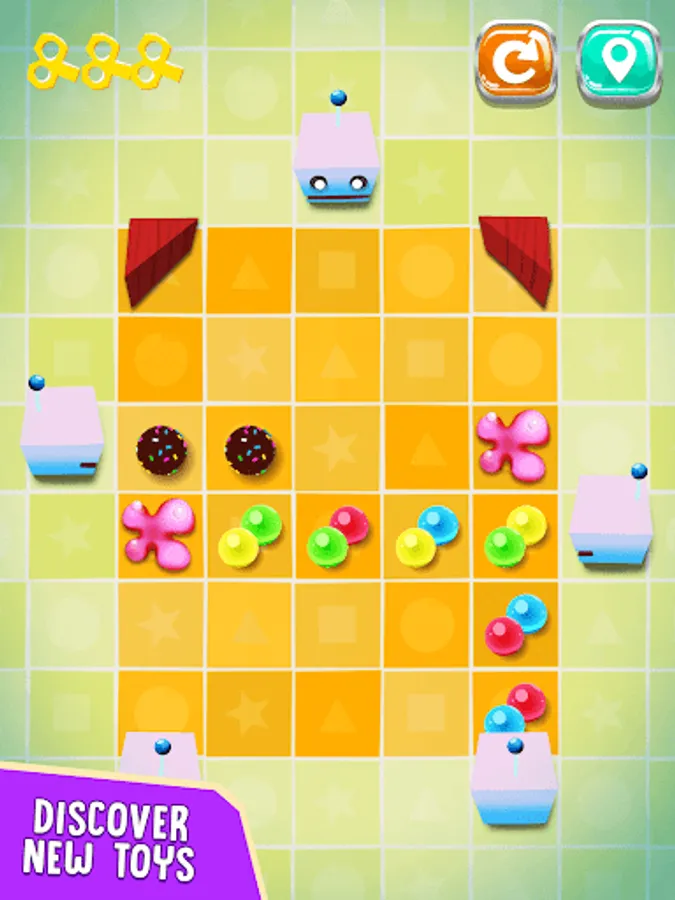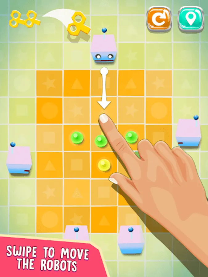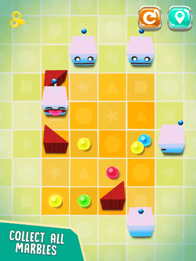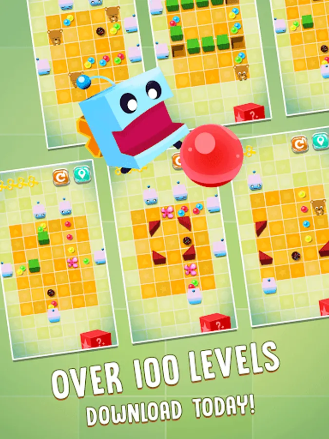Discover new toys as the robots collect marbles throughout the toy shop. Use toy blocks to change your robot’s direction, send robots walking over each other’s heads, leave your robots trapped in bubblegum, and smash chocolate balls into teddy bears!