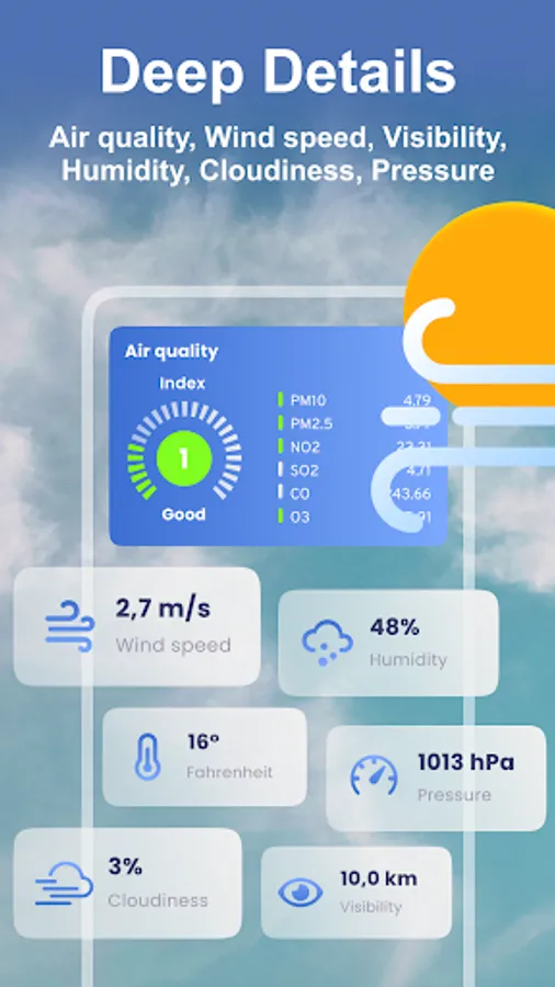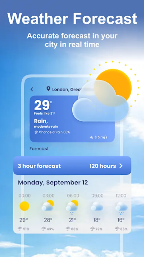 Feel free to install this live weather widget right now! This weather app will be informing you about the meteorological conditions every day.