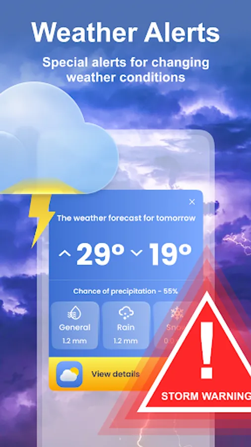 • The app can send you notifications about changing meteorological conditions. For instance, it can be rain alerts or warnings about the high air temperature.