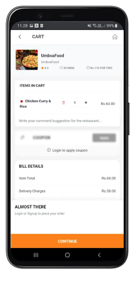 - Give a rating and leave a comment for the restaurant after you tested food.