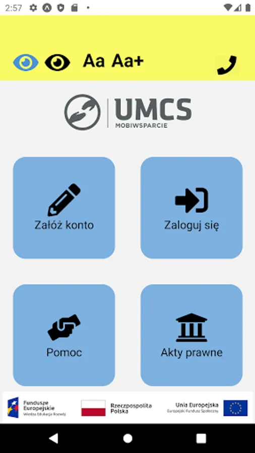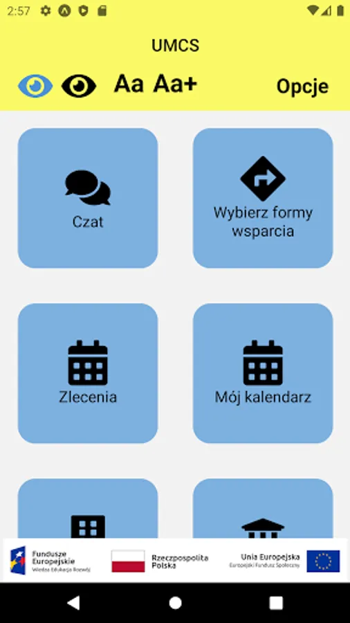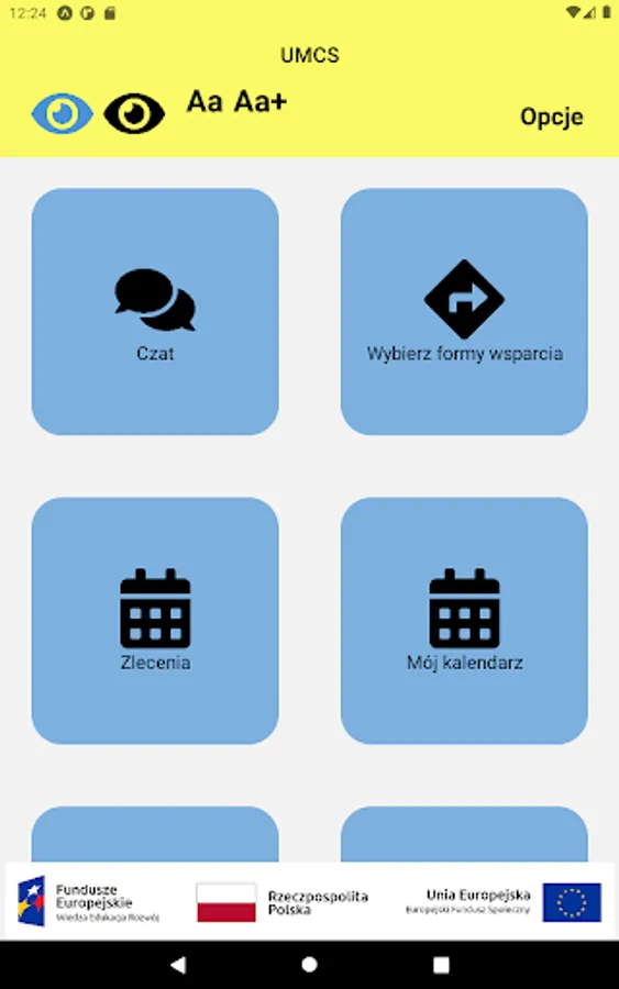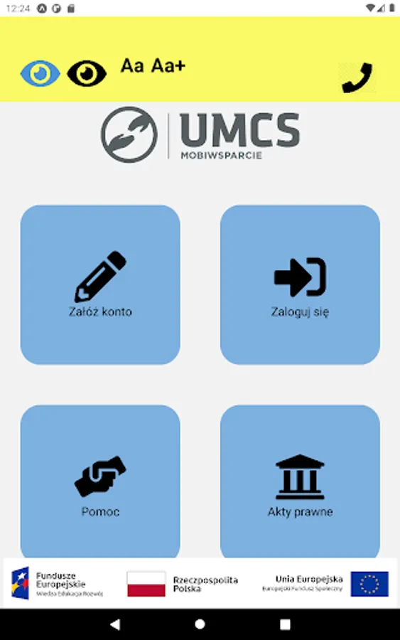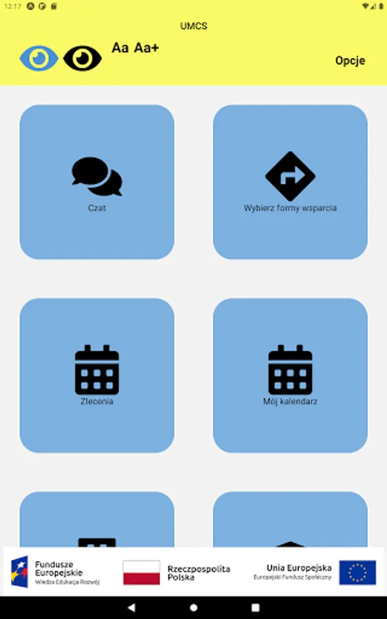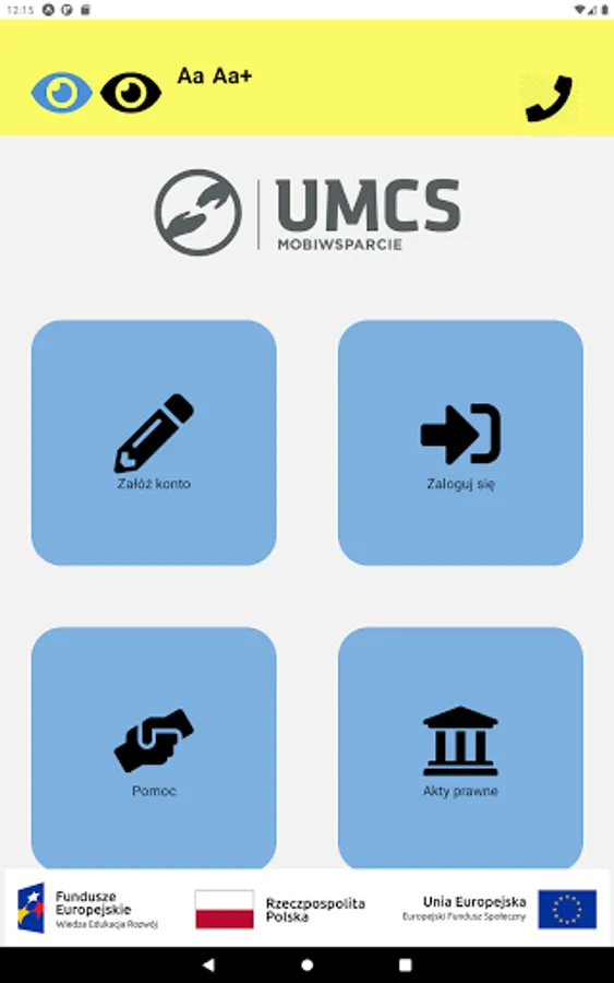 The application was created as part of the project "Available UMCS" implemented under the Operational Program Knowledge Education Development for 2014-2020, Priority Axis III Higher education for the economy and development, Measure 3.5 Comprehensive programs of universities co-financed by the European Social Fund.