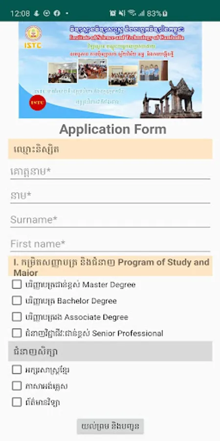 This Application for user who would like to apply online to Institute of Science and Technology of Cambodia - ISTC Preah Vihear and Oddar Meanchey province