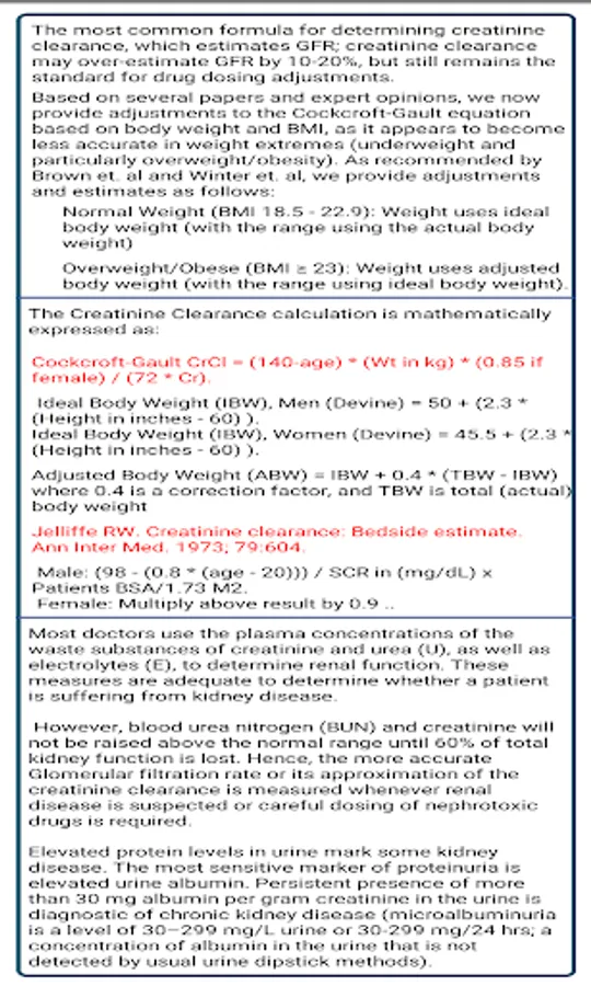 The Creatinine Clearance Calculator is a must-have for any health care professional who performs this calculation regularly!