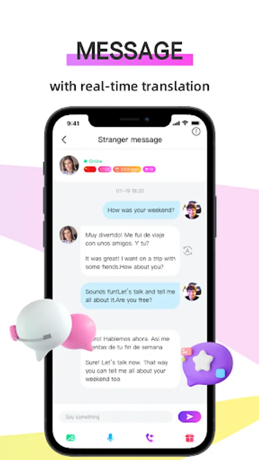 - Don't worry if you don't speak the language of your friend. We will translate your chat in real time so you can have an amazing live chat and easily make friends from all over the world