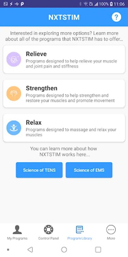 NXTSTIM is a cutting edge therapeutic solution for the optimal pain relief outcome powered by proprietary and proven Artificial Intelligence (AI) technology. The NXTSTIM Ecosystem App needs to work with FDA cleared NXTSTIM medical device UPK-GE01, called EcoAI. The App provides personalized pain therapy with comprehensive pain relief, strengthening and relaxation. The therapy procedure is made to be the best outcome-oriented therapy experience, driven by a closed-loop process with personalized therapy tracking, reminding, periodic review and continuous optimization using BIG DATA and AI technology. It makes therapy much easier, simpler and more enjoyable.