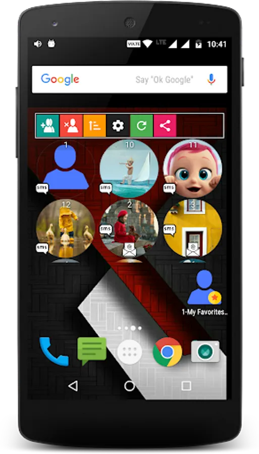 Your Favorite contacts WhatsApp/phone/SMS/E-mail at one touch in home screen.