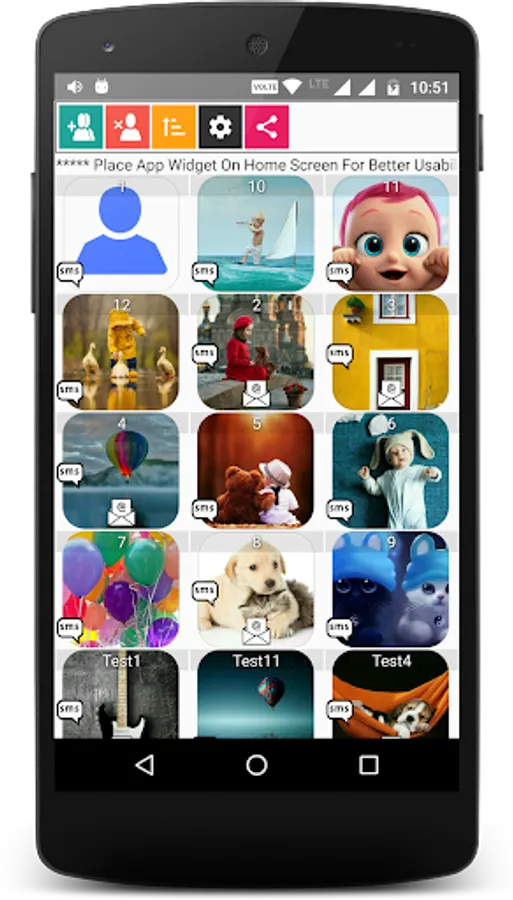 * Select Widgets menu and add My Favorite Contacts Widget on Home Screen.