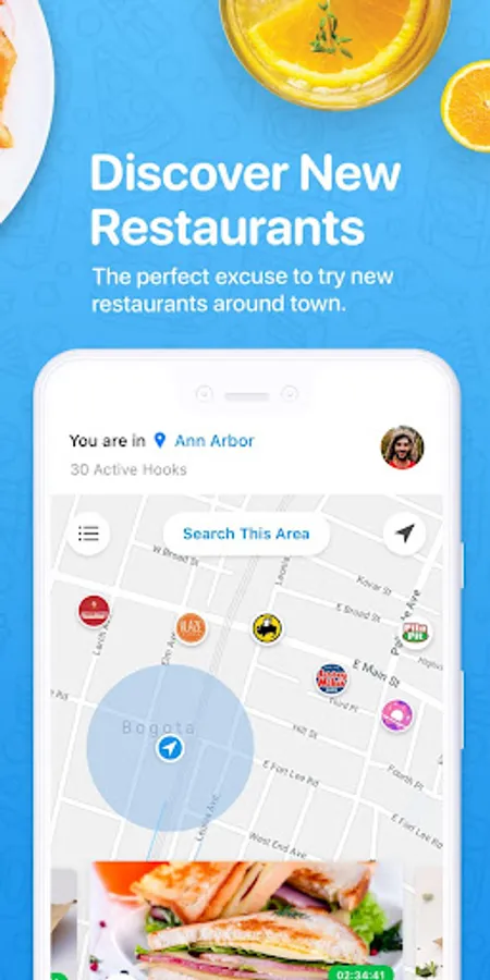 The app’s live feed features short term deals that are continuously changing throughout the day. You are able to see what kind of food & drink deals are happening nearby, how much you're going to save, and how long you have before the deal expires. Hooked is pioneering a new food and drink scene by helping you decide what & where to eat while saving you money at the same time.