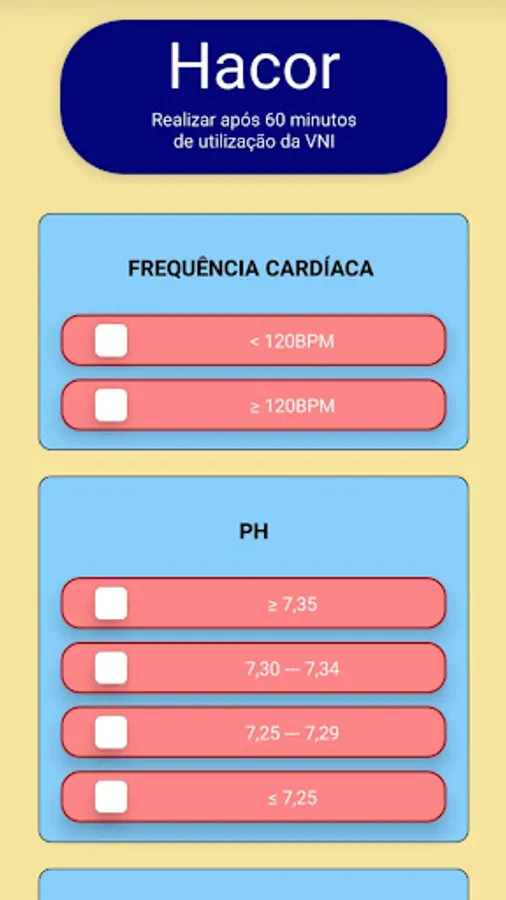 This application can help the health professional at the bedside in his decision-making and indicate the patient in acute respiratory failure to non-invasive ventilatory support or orotracheal intubation associated with invasive mechanical ventilation and according to the score of the answers presented during the course. its use, it may inform the possible procedure to be performed.