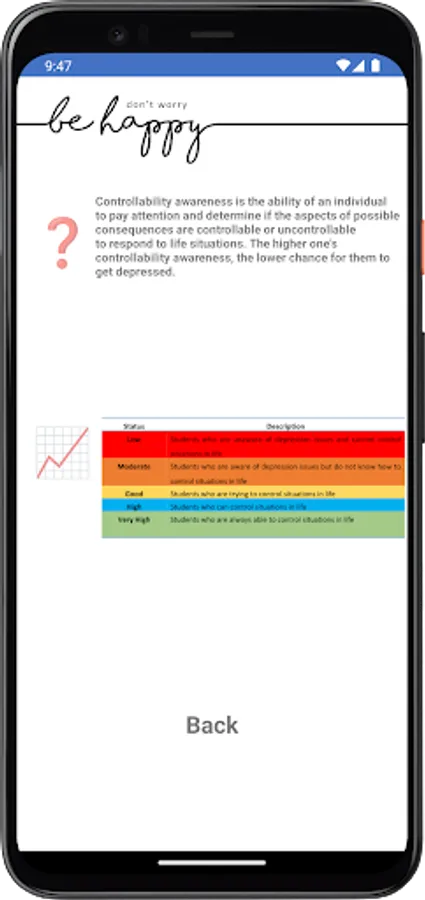 ~ Mobile app: provide information about mental health, especially depression and controllability awareness. You can also monitor your daily, weekly and monthly controllability awareness status.