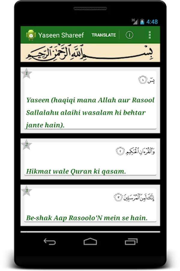 Read Yaseen Shareef and its Kanzul imaan Translation in Urdu, English and Roman(Urdu in English) in a beautiful card layout along with its benefits.