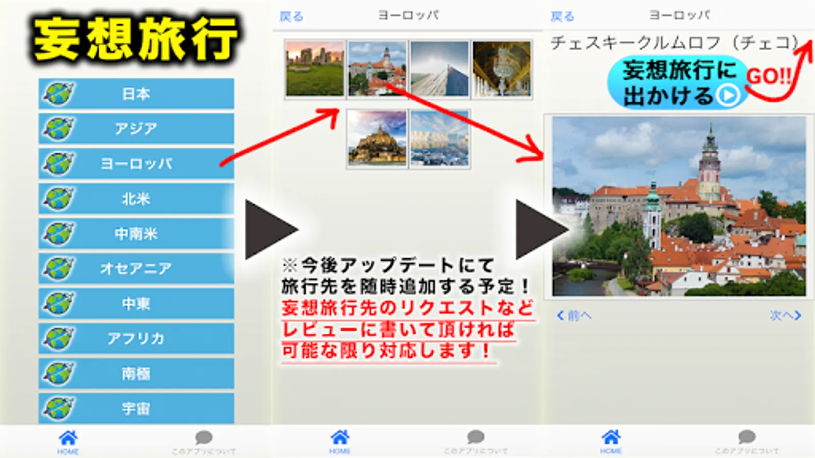 妄想旅行で行ってみたい旅行先など、評価レビューコメントにリクエストなど書いて頂けた場合は、そちらから優先的に追加対応も進めさせて頂きます!(もちろんリクエストしても何でも永久無料です。笑)