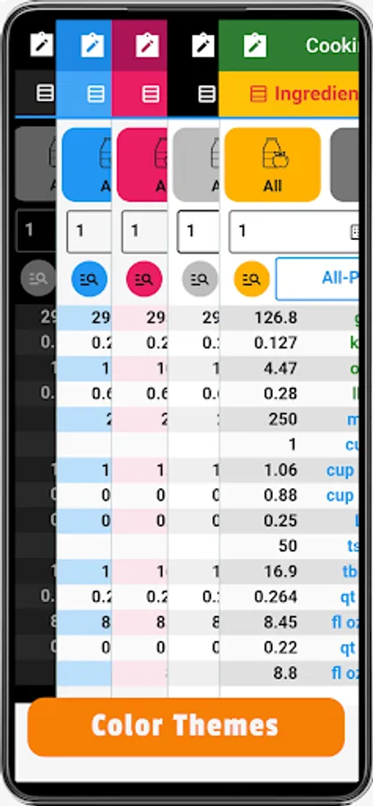 The app also has temperature, volume, and weight converters which makes it a complete kitchen calculator. You can select the number format and choose your favorite color theme.