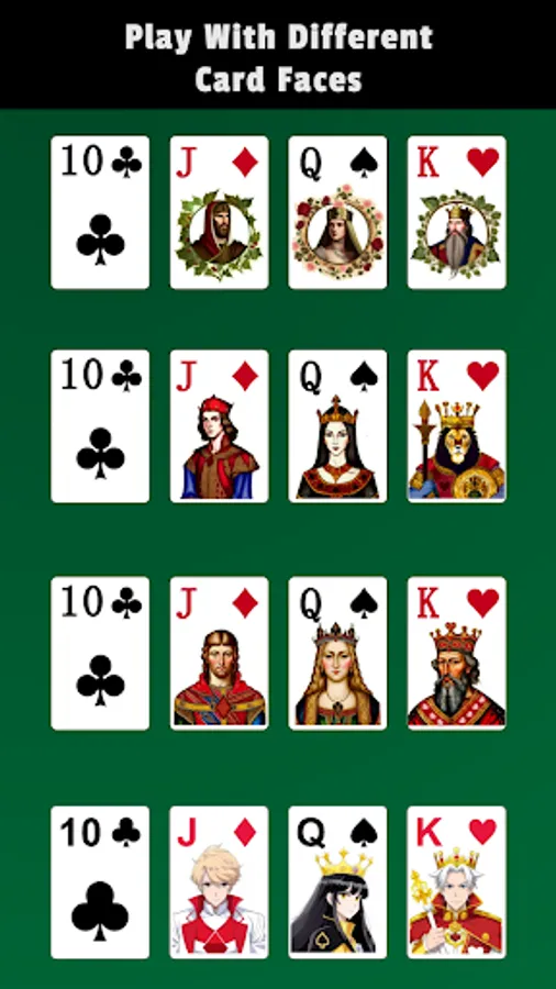 ♦ Choose from many card backs, card face designs, and backgrounds.