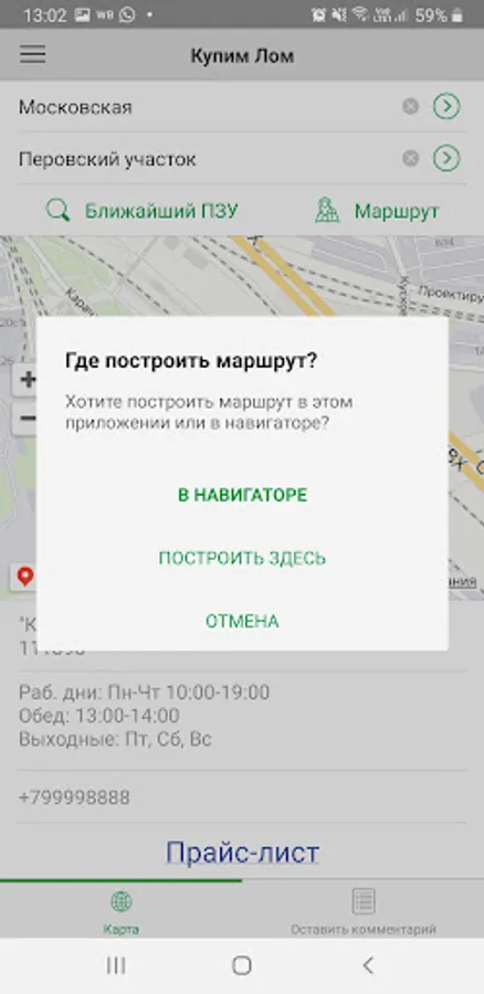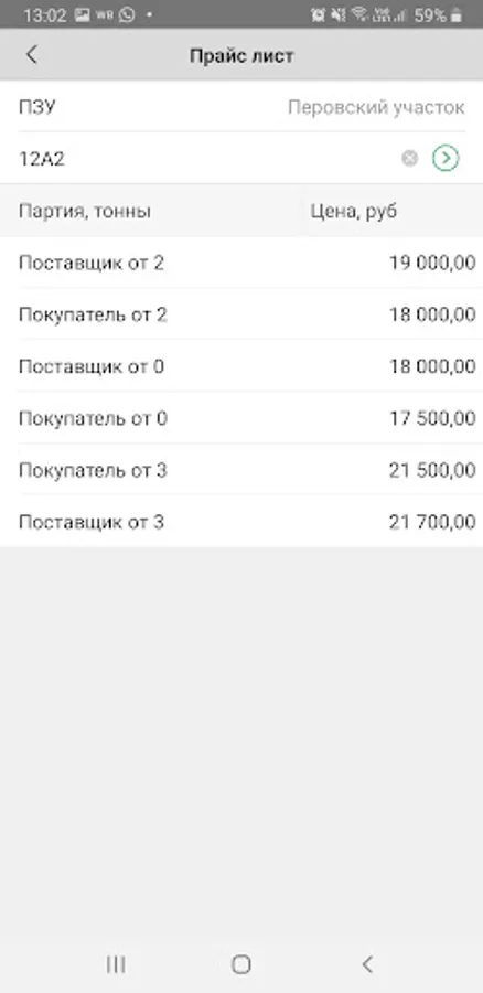 List of production and procurement areas with contact details, price list with types of scrap and prices.