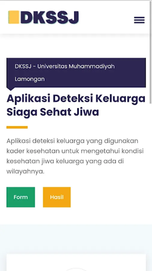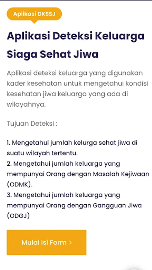 Family detection application used by health cadres to determine the mental health condition of families in their area.